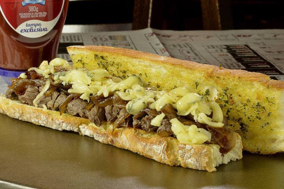 Fraldinha com Ciabatta: fraldinha grelhada e gratinada com queijo gorgonzola e muçarela, pesto de hortelã e cebola caramelada na ciabatta Preço: R$ 20 Endereço: Rua André Ampere, 215 - Brooklin Novo – Tel: (11) 5507-4125