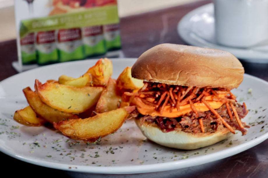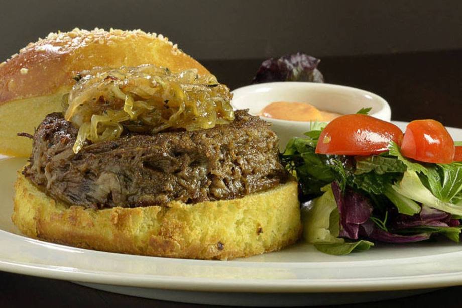 Astoria: combinação de carne desfiada cozida lentamente, cheddar e batata palha com páprica, servido no pão de hambúrger. Acompanha batatas bravas. Preço: R$ 25 Endereço: Rua Simão Álvares, 486 – Pinheiros – Tel: (11) 3034-0996