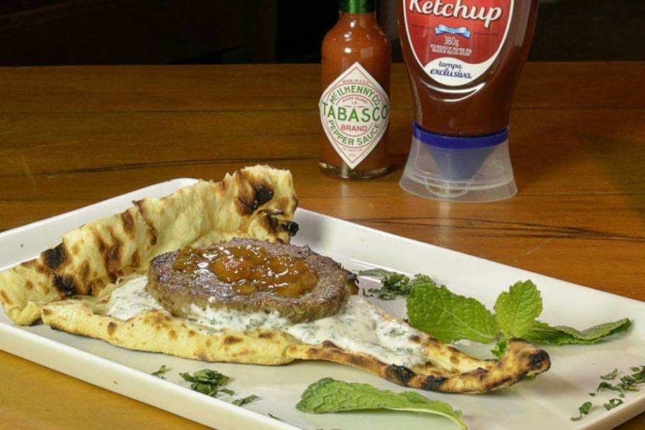 Football Club Goa: hambúrguer de cordeiro temperado com marsala (Curry indiano) preparado na casa, servido no pão naan, com molho de iogurte e hortelã e coberto com chutney de manga que pode ter picancia baixa, media ou alta, temperado com TABASCO. Preço: R$ 25 Endereço: R. Harmonia, 506 - Vila Madalena – Tel: (11) 2307-2381