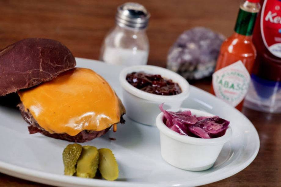 Black Secreto: hambúrguer de fraldinha 180g com cheddar inglês e cebola caramelizada, no pão preto australiano. Preço: R$ 22 Endereço: R. Cunha Gago, 620 – Pinheiros – Tel: (11) 3729-3252