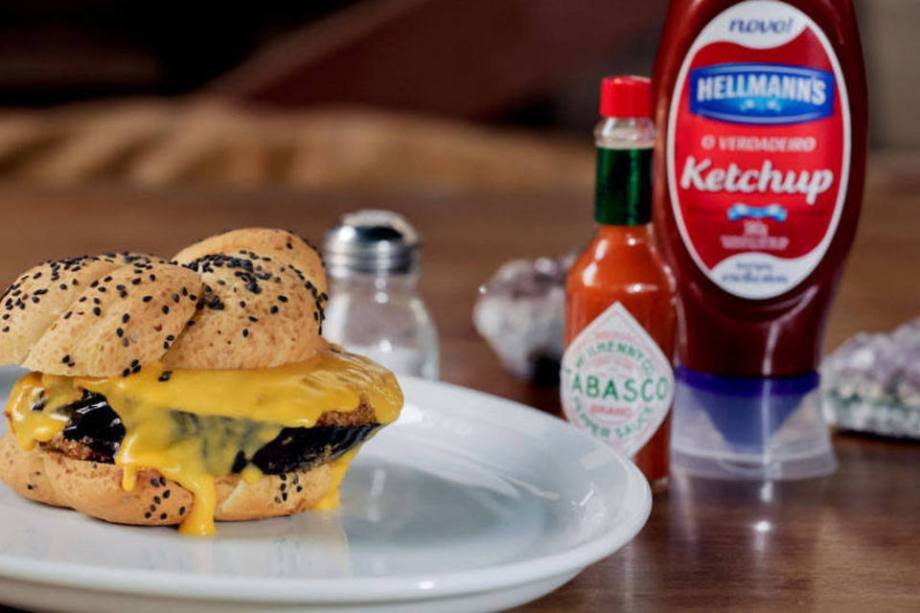 Veggy Burger Secreto: berinjela à milanesa, queijo cheddar cremoso, relish de pepino, cebola roxa caramelizada no pão bagel soft roll com gergelim preto. Preço: R$ 22 Endereço: R. Cunha Gago, 620 – Pinheiros – Tel: (11) 3729-3252