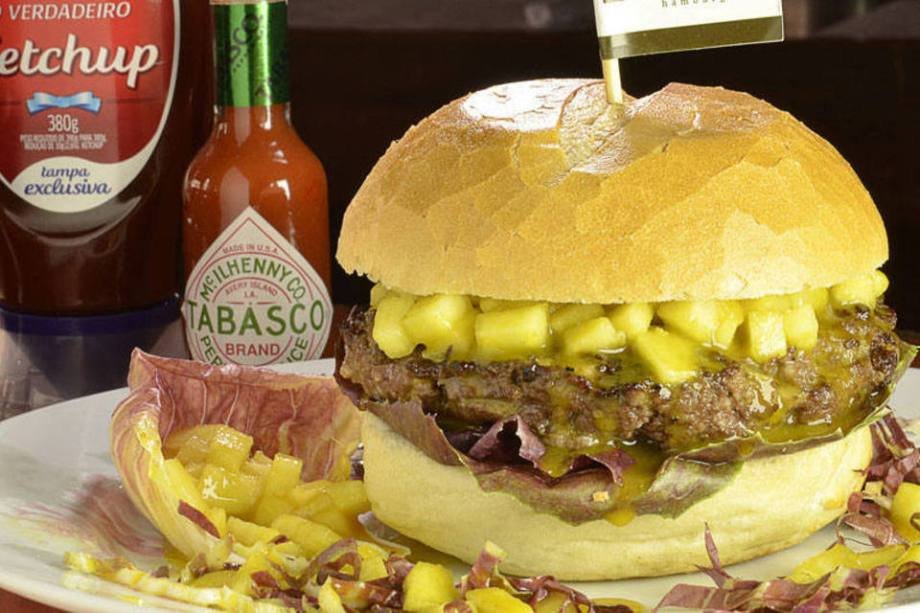 Flamed Pineapple Burger: hambúrguer de 200g de costela 100% Angus, abacaxi flambado com Cointreau, geleia picante de bacon defumado e maionese de mel com canela, no pão australiano. Preço: R$ 44 Endereço: R. Jandiatuba, 242 – Panamby – Tel: (11) 2309-2544
