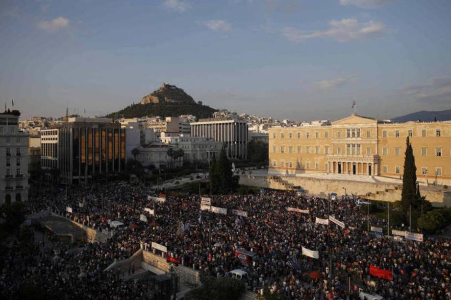 O controle de capitais estabelecido hoje levou a filas, brigas, corridas ao supermercado e postos de combustíveis e um protesto anti-austeridade que reuniu milhares de gregos na frente do Parlamento. Veja as fotos: