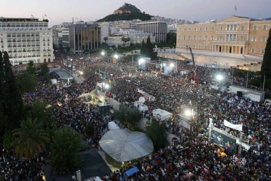 Nesta sexta-feira, dezenas de milhares de gregos se reuniram em Atenas em dois comícios. Na praça na frente do Parlamento, o primeiro-ministro Alex Tsipras defendia o "Oxi" ("não").