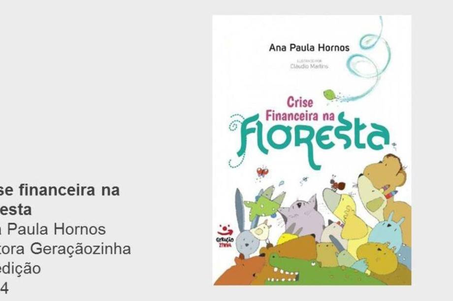 A mãe e educadora financeira Ana Paula Hornos propõe uma nova versão da fábula A cigarra e a formiga, que se transforma em uma lição de economia para crianças. Sem preocupação alguma com o lado material da vida, a cigarra toma folhas emprestadas da formiga e não paga o que deve, oferecendo sua preciosa viola como garantia. Nessa versão da história, a cigarra faz o mesmo com a borboleta, a minhoca, o bicho-preguiça e outros bichos. Esperto, o macaco fundou um banco de folhas, as moedas da floresta, que ele empresta só a bons pagadores, com juros. O macaco tem diversos tipos de clientes, da borboleta que não resiste às compras e vive endividada ao joão-de-barro, cliente exemplar e trabalhador, consciente sobre suas finanças que ajuda o periquito a construir sua casa. De forma lúdica, a escritora mostra como se ganha dinheiro e a importância de poupar, investir e consumir com consciência. O livro é ilustrado por Cláudio Martins. Ana Paula Hornos é coach, consultora financeira pessoal e empresarial e autora do material didático escolar O bê a bá do dinheiro, para educação financeira de crianças e adolescentes.