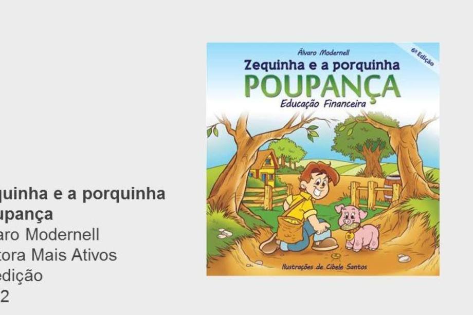 O educador financeiro Álvaro Modernell acredita que a melhor forma de ensinar sobre dinheiro para as crianças é entrar no universo delas e aproveitar situações na rotina infantil para falar sobre esse assunto. O autor escreveu Zequinha e a porquinha Poupança para seus filhos, Leo e Lorena. A história se passa no Sítio da Prosperidade, um lugar especial cheio de plantas e animais, onde vivia o menino Zequinha. Seu grande sonho era ter um cavalo, mas seus pais não podiam pagar. A alternativa que Seu Zeca encontrou foi dar de presente para o filho uma porquinha chamada Poupança. Zequinha aprendeu que teria que cuidar da Poupança para ela crescer e ficar forte e, um dia, comprar o sonhado cavalo. Até que um dia ela éroubada, e a história dá ume reviravolta. O livro é ilustrado por Cibele Santos e é indicado para crianças de até 11 anos. O autor já escreveu outros livros infantis, como Quero ser rico e O pé de meia mágico. Álvaro Modernell é consultor financeiro, sócio da Mais Ativos e professor de educação financeira. É um dos integrantes do grupo de apoio pedagógico que elabora a Estratégia Nacional de Educação Financeira.