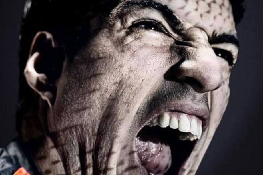 marca com o jogador uruguaio posando de dentes escancarados, e que desde a mordida que o retirou da