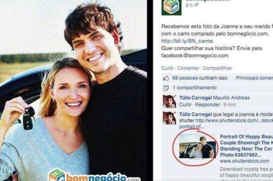 Em sua página no Facebook, a marca BomNegócio.com publicou um post que deveria ser inocente - um casal de usuários que supostamente havia enviado uma fotografia em que comemoravam o carro novo comprado através do site. O problema? A foto foi retirada de bancos de imagens como Getty Images e ShutterStock. Imediatamente, a gafe virou meme e material para piada internet afora.