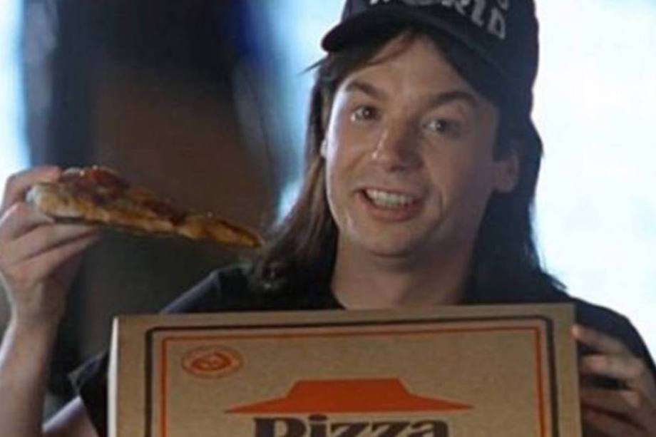 Entre pacotes de Doritos e caixas de Pizza Hut, a comédia de 1992 encontrou espaço para fazer piada com o conceito de “product placement”. Questionado se faria algum tipo de publicidade em seu programa de TV, o protagonista Wayne Campbell nega a possibilidade só para, na sequência, olhar para a câmera com ares de garoto-propaganda e abrir uma caixa de Pizza Hut.