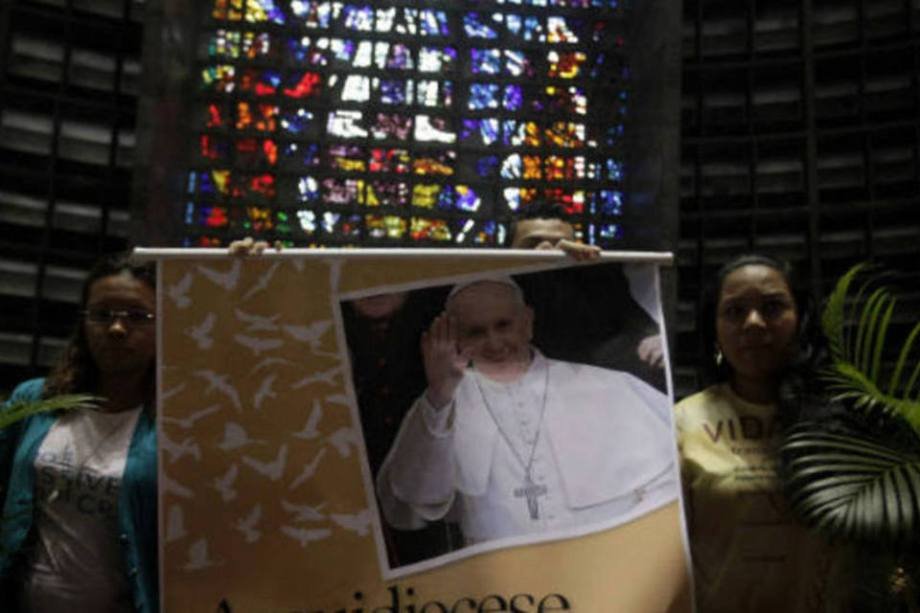 5. No Rio de Janeiro, católicos celebraram a data com cartazes do Papa Francisco, que visitará a cidade em julho