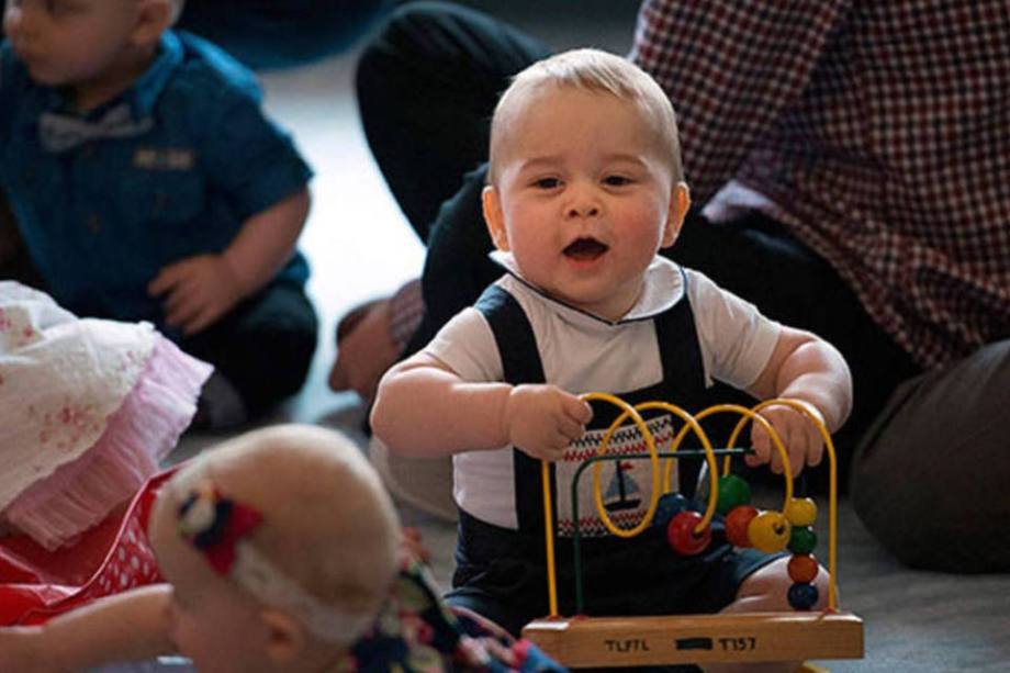 Com apenas oito meses, o pequeno George teve a missão de brincar com dez crianças da sua idade durante viagem a Nova Zelândia nesta quarta-feira (9).
