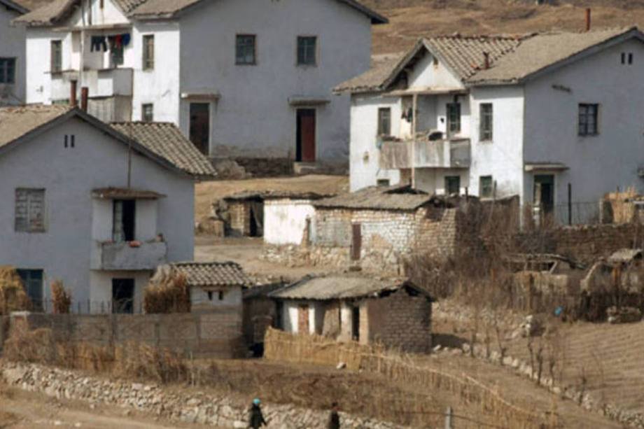 11. Simplicidade da vila próxima ao complexo industrial de Kaesong contrasta com os modernos prédios das empresas instaladas na região