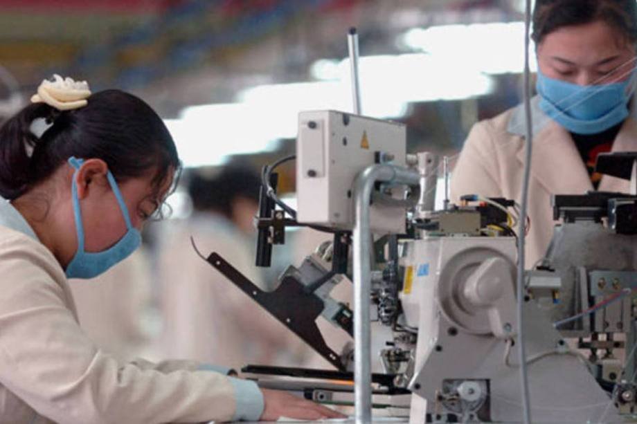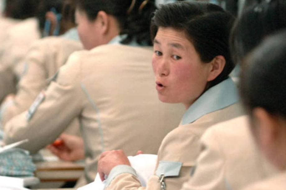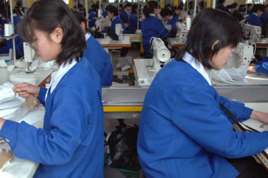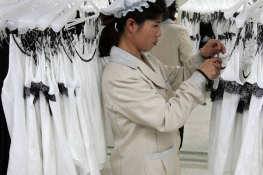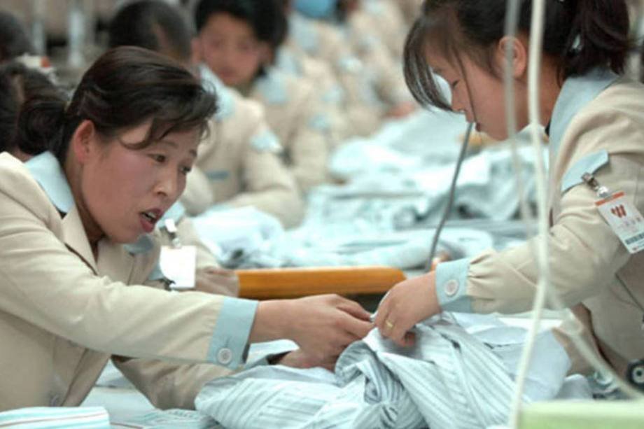 14. Operárias trabalham em Shinwon Inc, fábrica têxtil instalada no complexo industrial de Kaesong, em 2006