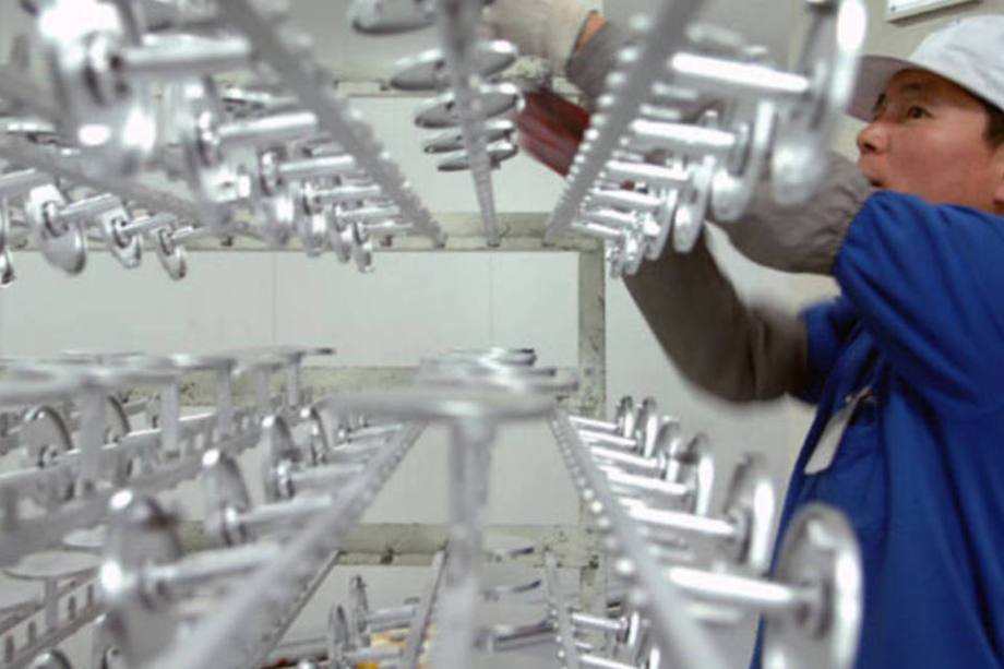 19. Funcionário da Taesung Industry Inc. confere embalagens de cosméticos fabricadas na planta de Kaesong, em 2006