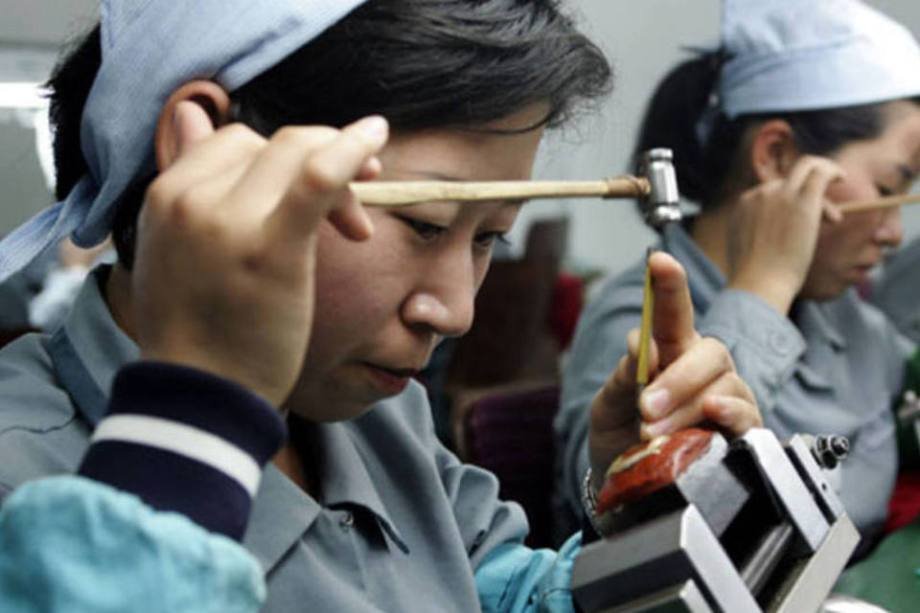 20. Linha de produção da Romanson, empresa sul-coreana de relógios instalada no complexo industrial de Kaesong, na Coreia do Norte, em 2007