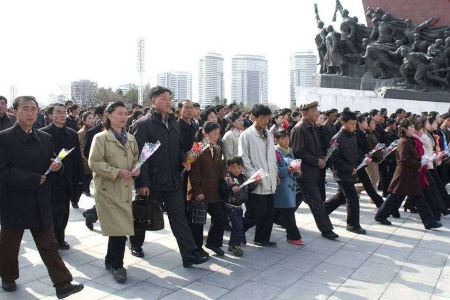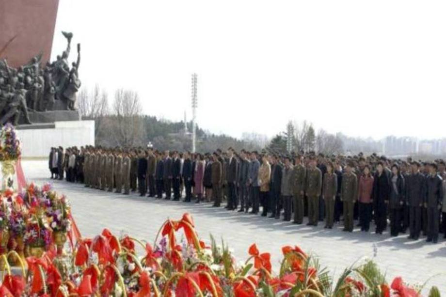 Soldados da Coreia do Norte, trabalhadores e estudantes colocam flores nas estátuas do fundador do país (Reuters/KCNA)