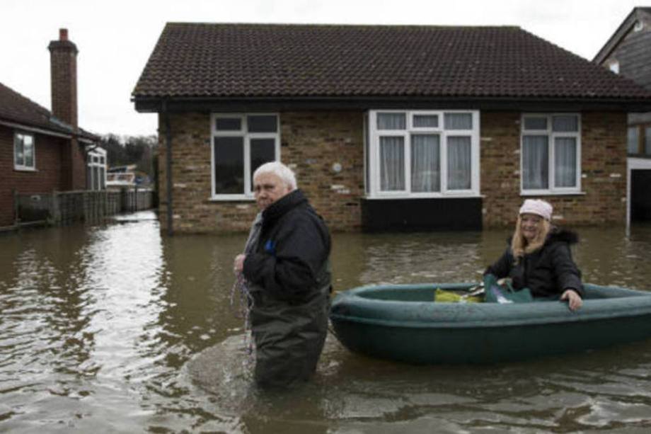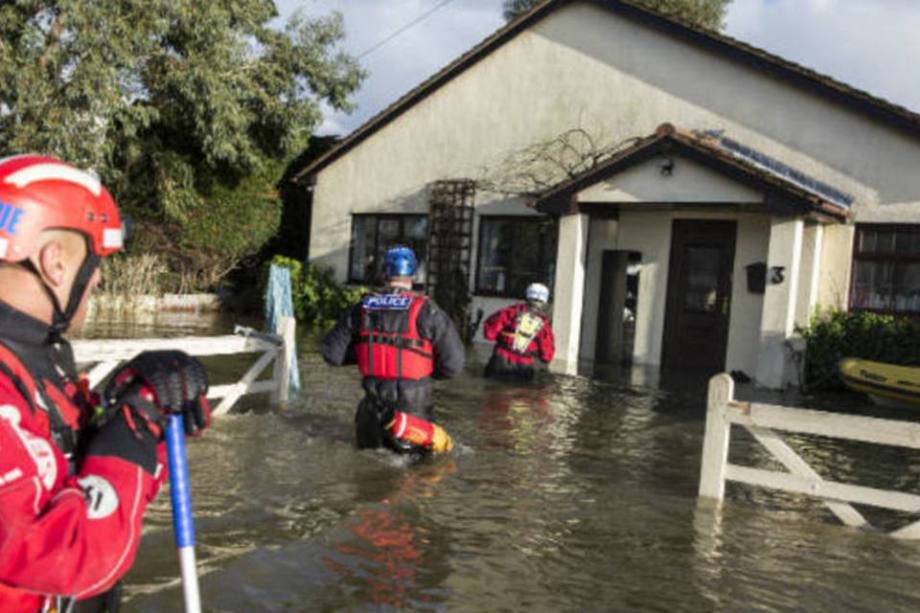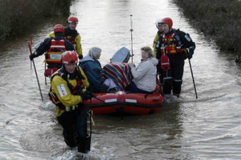 Moradores tentam escapar, utilizando barcos para se locomover e salvar seus pertences. Outros são auxiliados pelo Corpo de Bombeiros. Fotos aéreas mostram a destruição na região de Somerset Levels. São cenas da enchente que o primeiro ministro britânico David Cameron chamou de "bíblica".