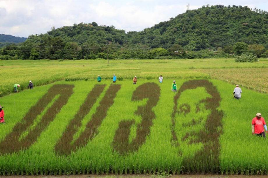 Uma arte feita no campo mostra a imagem do presidente Rodrigo Duterte em Los Banos, província de Laguna, nas Filipinas. Nesta semana, o presidente do país voltou a causar constrangimentos na esfera internacional ao mandar o presidente americano Barack Obama “para o inferno”. Eleito com uma plataforma de lutar com violência contra o tráfico de drogas e usuários, Duterte tem a aprovação de 76% da população do país nestes primeiros três meses de governo.