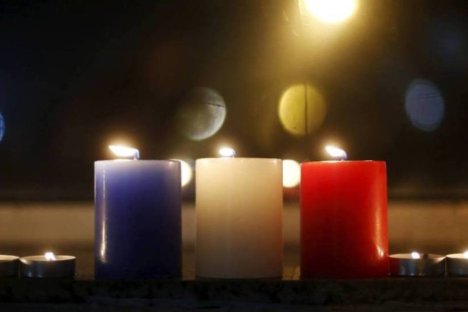 15. Velas nas cores francesas colocadas à frente da embaixada em Seul, Coreia do Sul, em tributo às vítimas dos atentados terroristas a Paris, França.