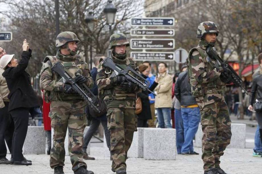 22. Onda de ataques em Paris levou o exército francês para as ruas da cidade. Na foto, soldados fazem guarda na Torre Eiffel.