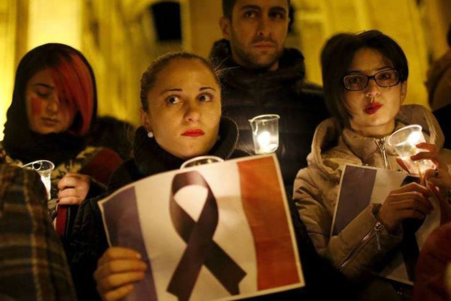 2. Pessoas seguram velas acesas em tributo às vítimas do ataque de Paris em Tbilisi, na Georgia.