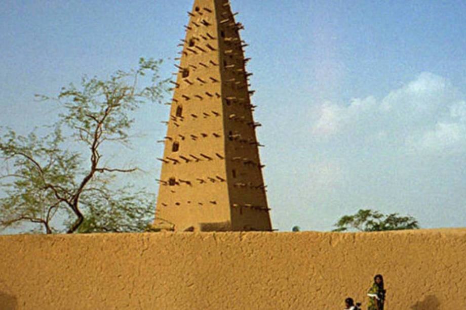 A cidade de Agadez, em Níger, é uma das portas de entrada para o deserto do Saara, e foi erguida por volta dos séculos 15 e 16. Seu centro histórico tem 11 quarteirões irregulares que abrigam residências, palacetes e templos religiosos. Um desses prédios tem a maior minarete (torre de mesquita) feita de tijolos de lama do mundo.