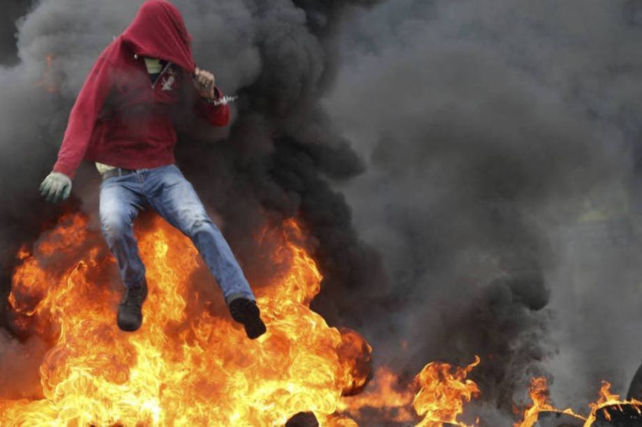 A região viveu novos dias de protestos nesta semana. Na foto, jovem palestino é fotografado próximo de pneus em chamas em Ramallah. O governo israelense estuda restringir benefícios e direitos de locomoção de palestinos que vivem próximos de Jerusalém numa tentativa de conter a onda de violência que já dura quase um mês.