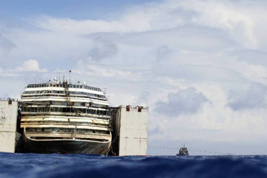 10. O cruzeiro Costa Concordia é transportado após seu acidente de dois anos e meio atrás, que matou 32 pessoas.