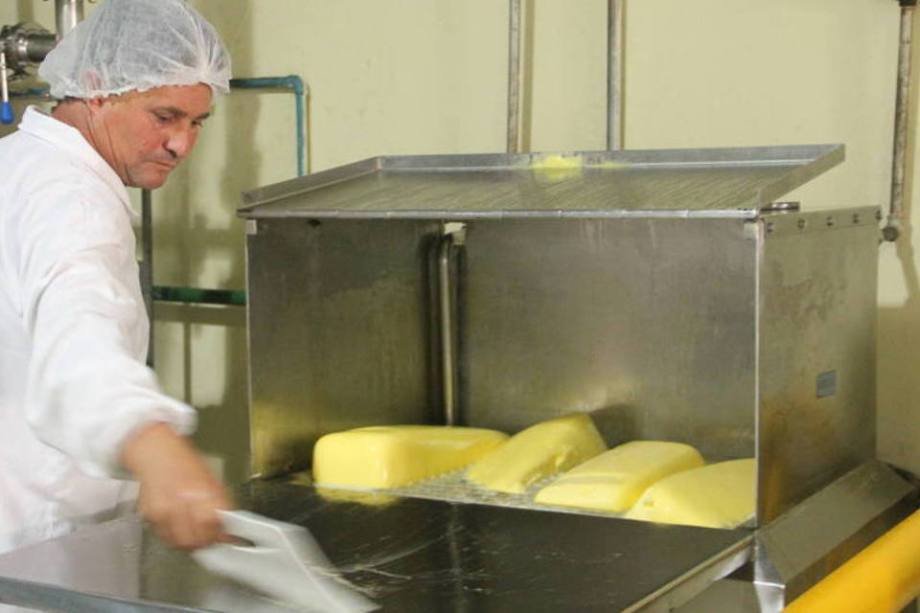 Antes de ser adicionada aos outros ingredientes, a manteiga precisa ser derretida em uma espécie de forno. O bloco do ingrediente é colocado sobre uma grade quente e o líquido escorrega para o compartimento de baixo. O óleo de palmiste, que também chega em blocos sólidos, é derretido em um equipamento à parte.