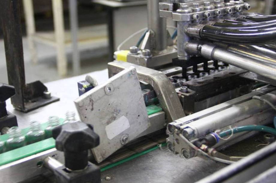 Nesta etapa, os vidrinhos são organizados pelo carrossel e entram na fila para envase. O processo de embalagem é semi manual – funcionários precisam abastecer as máquinas com os componentes dos esmaltes, como os vidros e as tintas.