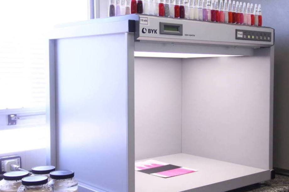Como a cor muda conforme a luz a qual é exposta, as tonalidades são analisadas nessa câmara, que irá imitar a luz do sol, de sombras, de lâmpadas incandescentes e de lâmpadas fluorescentes.