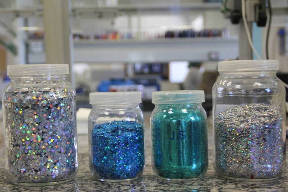 Alguns esmaltes também incluem glitter. O que causa esse efeito é um plástico, que recebe um tratamento especial para ser resistente ao esmalte. Eles podem ser de várias cores e formatos, como bolinhas, corações ou partículas bem pequenas.