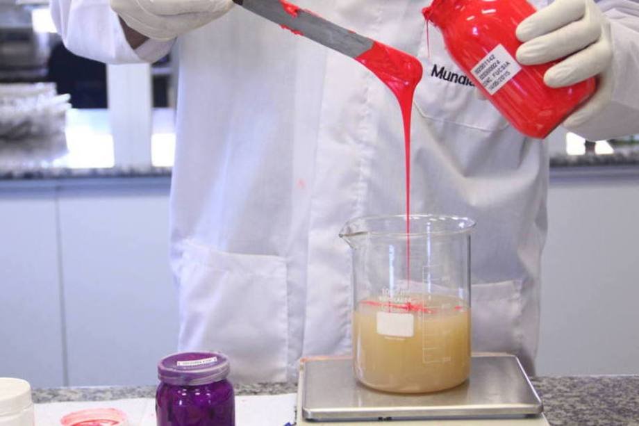 Todos os processos para criar uma cor, como quantidade dos ingredientes, ordem de mistura e tempo de agitação, são anotados para poderem ser reproduzidos em escala industrial.