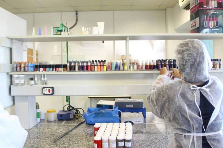 Os primeiros itens na linha de produção dos esmaltes são os vidrinhos. A fábrica tem 12 linhas de envase e 7 de blistagem (ou embalagem), ainda que nem todas funcionem o tempo todo. As cores mais vendidas da empresa são o branco e o preto, por serem mais básicas. Logo depois, vêm os tradicionais vermelhos.