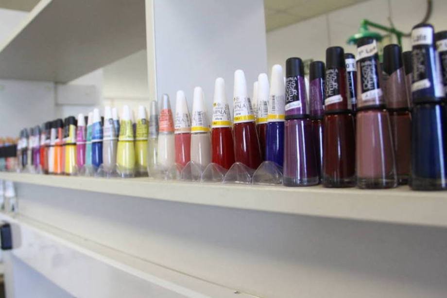Nesse estoque, ficam todos os materiais usados na fabricação dos esmaltes, com exceção do próprio líquido. Aqui, está o PVC para fazer embalagens, os vidrinhos, pincéis, tampas, etiquetas, entre outros. Já o centro de distribuição dos produtos prontos fica em Extrema, Minas Gerais.