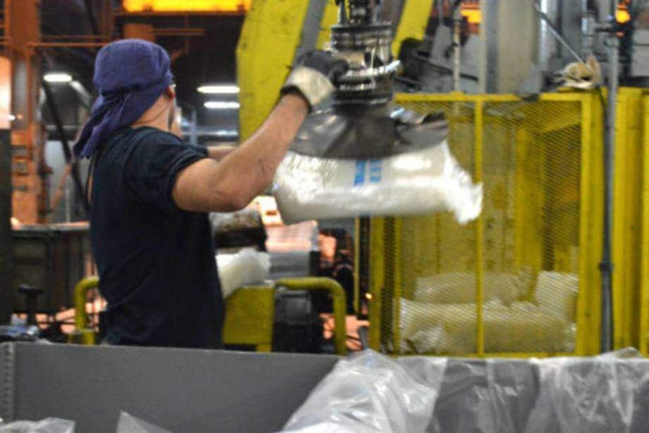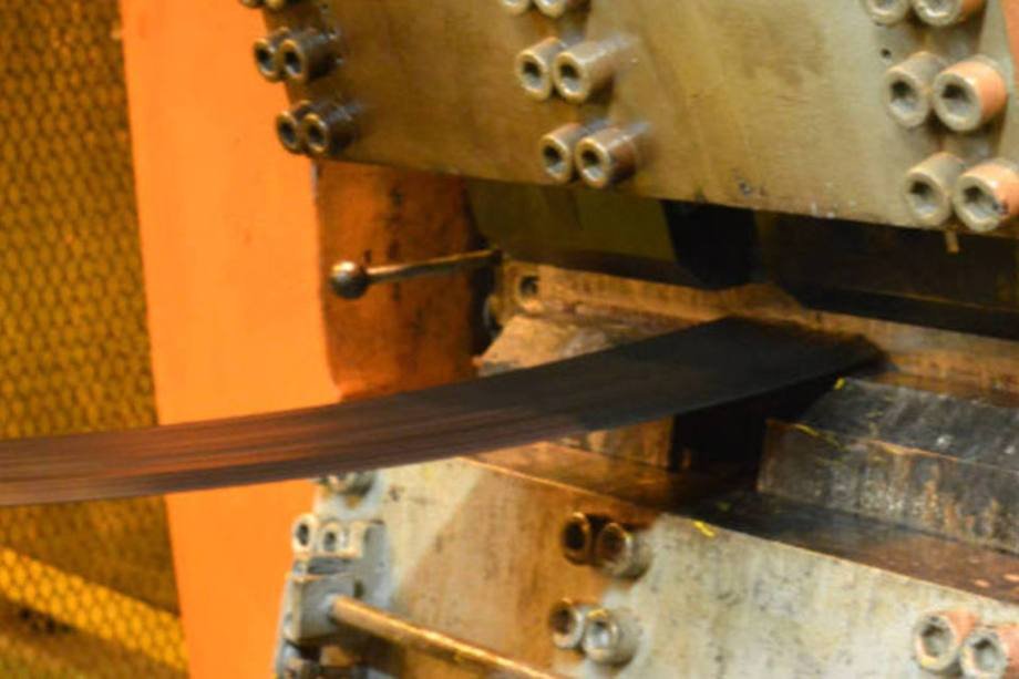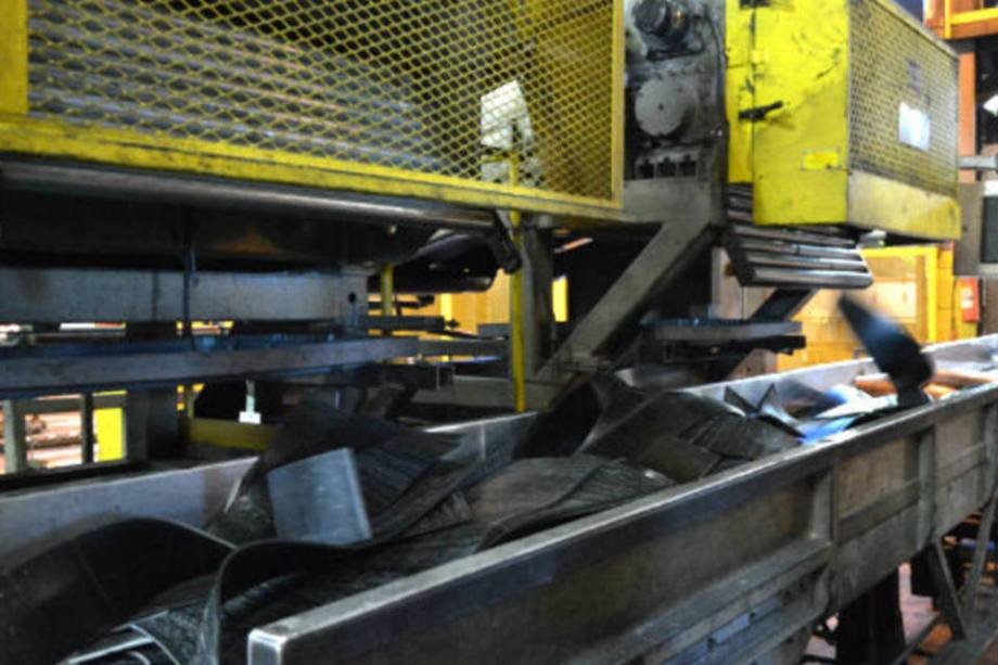 Após passarem pelas etapas de mistura, as mantas são cortadas em tiras, para poderem passar para as próximas máquinas.