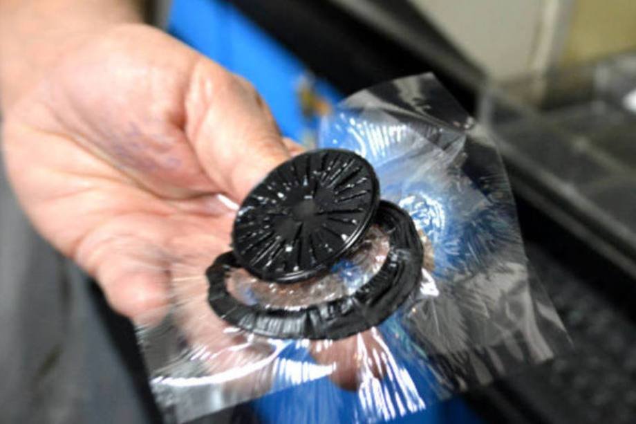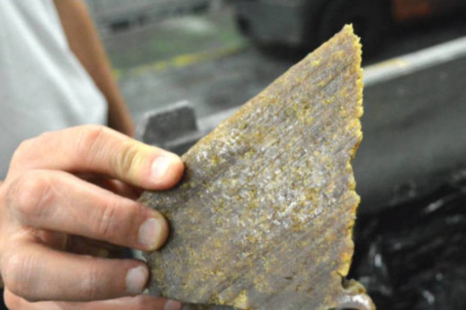 Depois de pronta, uma amostra da borracha é retirada de cada lote para serem feitos os testes de qualidade.
