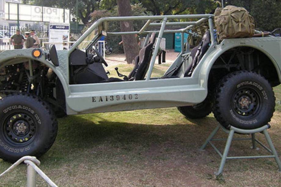 10/12  (Wikicommons / Joaquín Alvarez Riera) 	Pode ser tratado como um veículo militar leve de dupla nacionalidade. Isso porque seu projeto teve início em 2004, durante uma reunião no Rio de Janeiro que teve representantes das forças armadas de Argentina e Brasil. 	De fato, mais de 85% das peças utilizadas em sua construção são feitas nos dois países, predominantemente na Argentina.	Um dos itens feitos por aqui é o motor 2.8 movido a diesel de 130 cavalos de potência. Por ser um veículo leve (2.100 kg) para sua categoria, o Gaucho é ideal para o transporte por aviões. 	Possui autonomia de 500 quilômetros e velocidade máxima de 120 km/h. Comporta até quatro ocupantes, e oferece como opcionais uma metraladora calibre 7,62mm e um kit de blindagem leve.