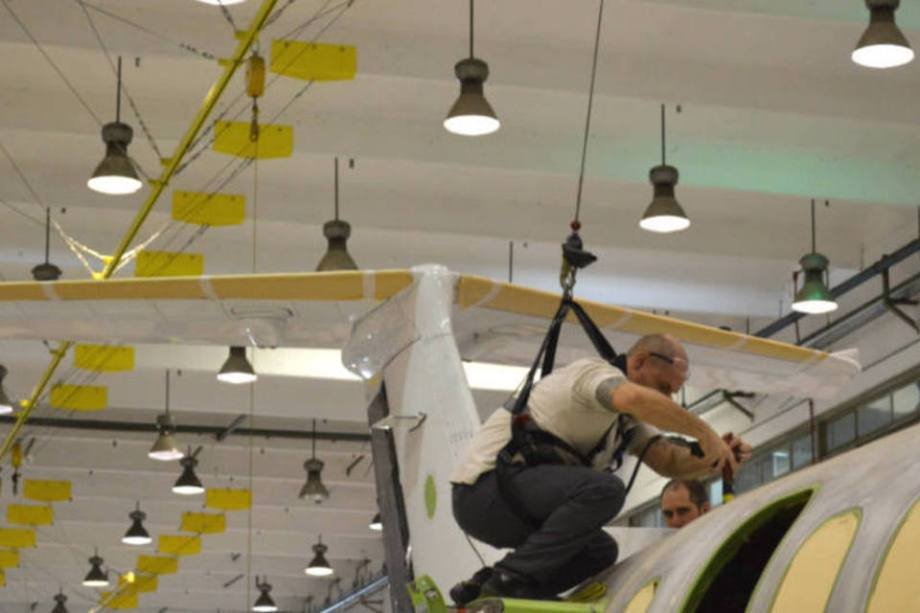 Depois de montada, cada peça passa por ajustes finais e por uma preparação para ser acoplada ao corpo do avião.