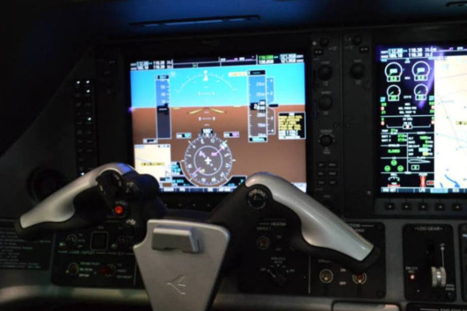 Todos os comandos do avião podem ser acessados a partir das telas touch screen e, ao contrário dos demais jatos ou aviões comerciais, há poucos botões no painel e nenhum no teto