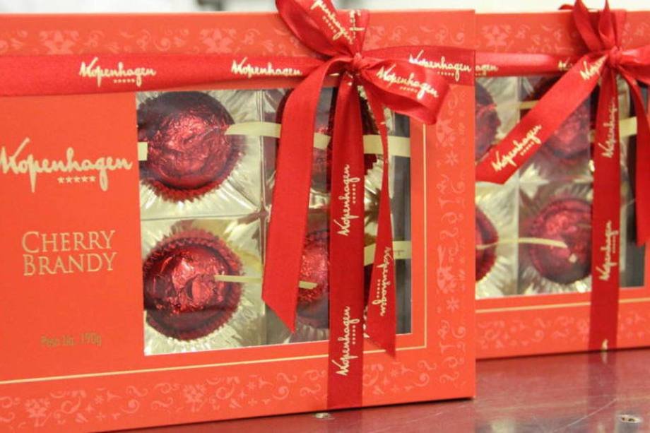 Essas embalagens irão para as 342 lojas da Kopenhagen no Brasil, de acordo com os pedidos que foram feitos por cada um. Irão de caminhão para centros regionais, onde serão divididas em veículos menores, para alcançar cada franqueado.
