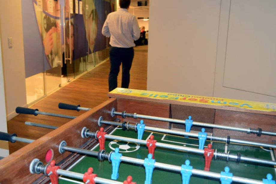 17/20  (Luísa Melo/Exame.com) 	No local, há uma sala de descompressão em que a equipe pode jogar tênis de mesa, sinuca, videogame e acessar a internet. O espaço pode ser usado a qualquer momento, desde que seja "com responsabilidade e bom senso".