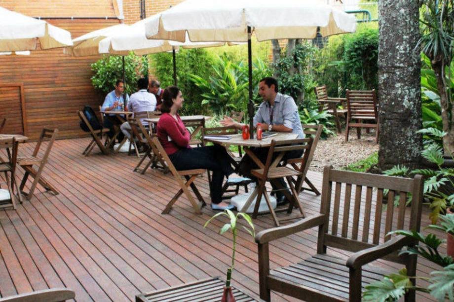 O café, que também fica na sede da associação, é repleto de plantas e possui uma sala de jogos. Os ambientes são usados para pausas no expediente ou mesmo reuniões informais.