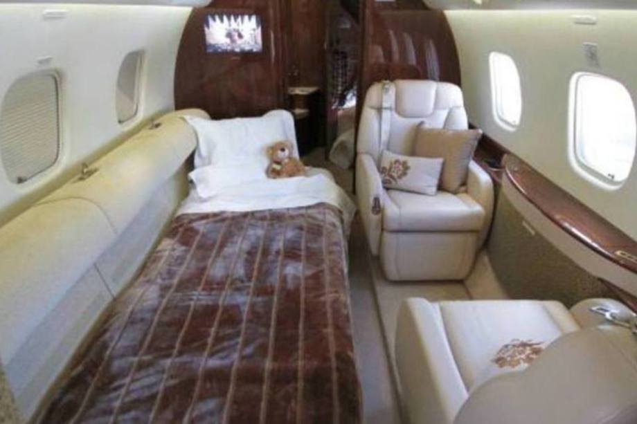 10. Helicóptero Bell (Learjet ao fundo): Com capacidade para seis passageiros, incluindo o piloto, o modelo custa 2,3 milhões de dólares