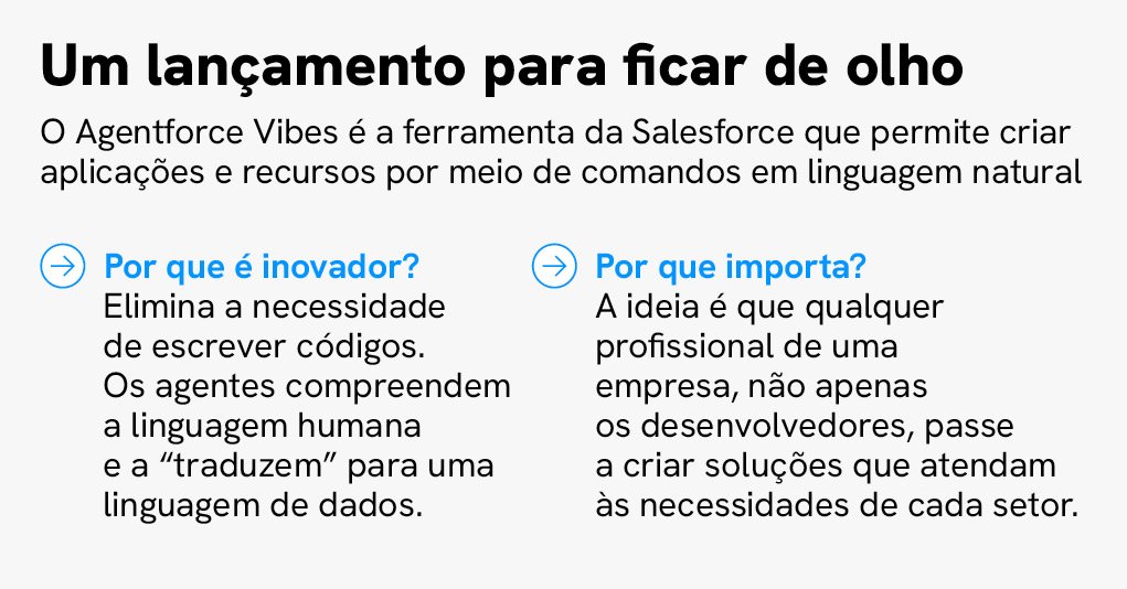 Para acompanhar toda essa revolução, a Salesforce apresentou o Agentforce 360, plataforma que centraliza seus agentes autônomos e integra soluções como Agentforce Sales, Agentforce Service, Agentforce Marketing, Agentforce Commerce, Slack, Tableau e Data 360.