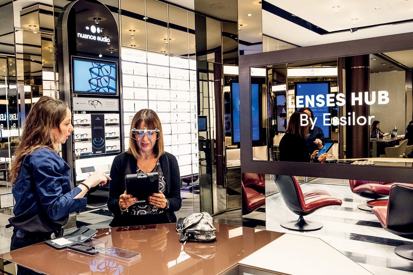 O endereço da GrandOptical da Champs-Élysées foi pensado para oferecer uma experiência de compra inspirada no art de -vivre parisiense — mas combinando luxo com muita tecnologia. Na loja, o cliente pode fazer um teste de visão em equipamentos que usam um modelo preditivo com inteligência artificial, com uma precisão maior no diagnóstico. Bem perto da entrada principal, vendedores fazem demonstração do Ray-Ban Meta, os óculos inteligentes com uma série de recursos audiovisuais, em que o usuário pode filmar o ambiente e ouvir um podcast, entre outras funções, com comando de voz. Recentemente, a Oakley e a Meta anunciaram também óculos inteligentes com funções semelhantes, mais voltados para performance.