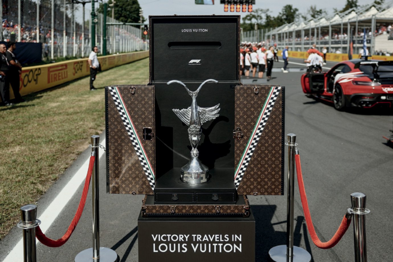 Quando os pilotos alinham seus carros para o grid de largada de um Grande Prêmio de Fórmula 1, a cerimônia oficial reúne os 20 competidores para a execução do hino nacional do país que recebe uma das 24 etapas da temporada. Diante deles, tem destaque um baú exclusivo produzido especialmente pela Louis Vuitton para carregar o troféu da vitória.