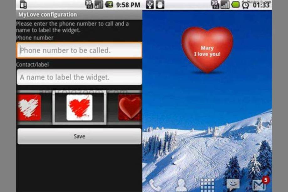 O amor tem pressa e às vezes não pode esperar o tempo necessário para encontrar a pessoa amada em uma extensa lista de contatos. OAmor Widget cria um atalho na tela inicial do aparelho Android para ligar para o (a) namorado (a) com apenas um clique. O widget é um coração clicável, que pode ser customizado de acordo com o humor (e paixão) do dono do smartphone. A instalação pode ser feita através do Android Market.