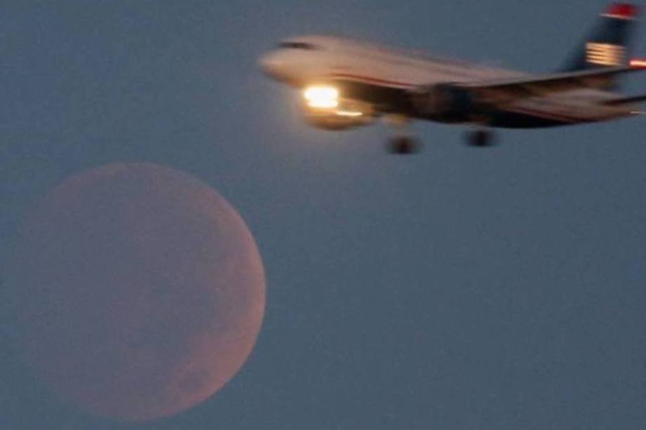 16. Avião voa com Lua ao fundo em Washington