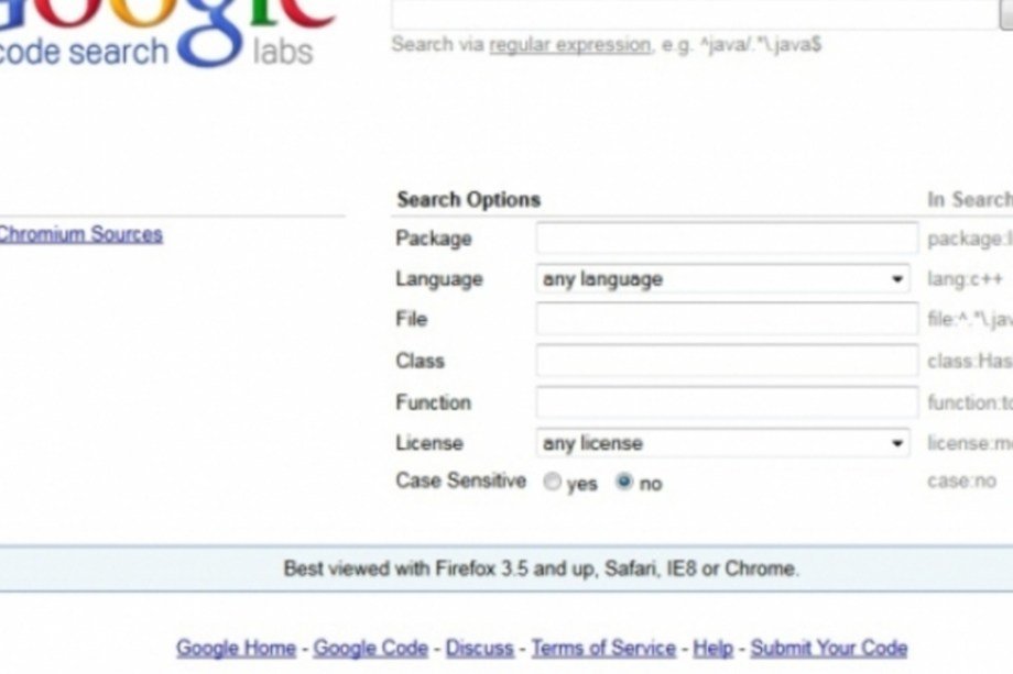 A ferramenta de busca para códigos open source foi colocada no ar em 2006 e era compatível com uma série de linguagens de programação. O Google a tirou do ar em 2012, em prol do